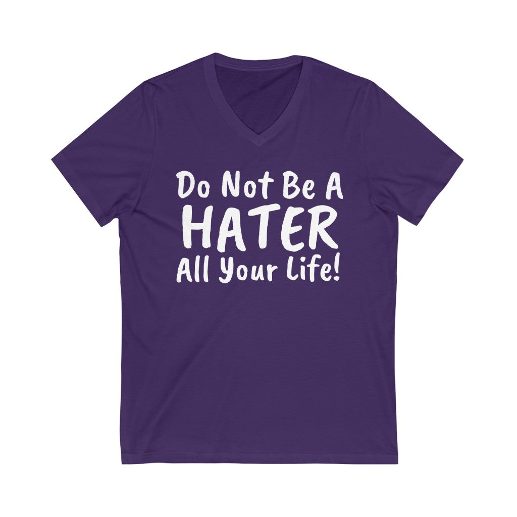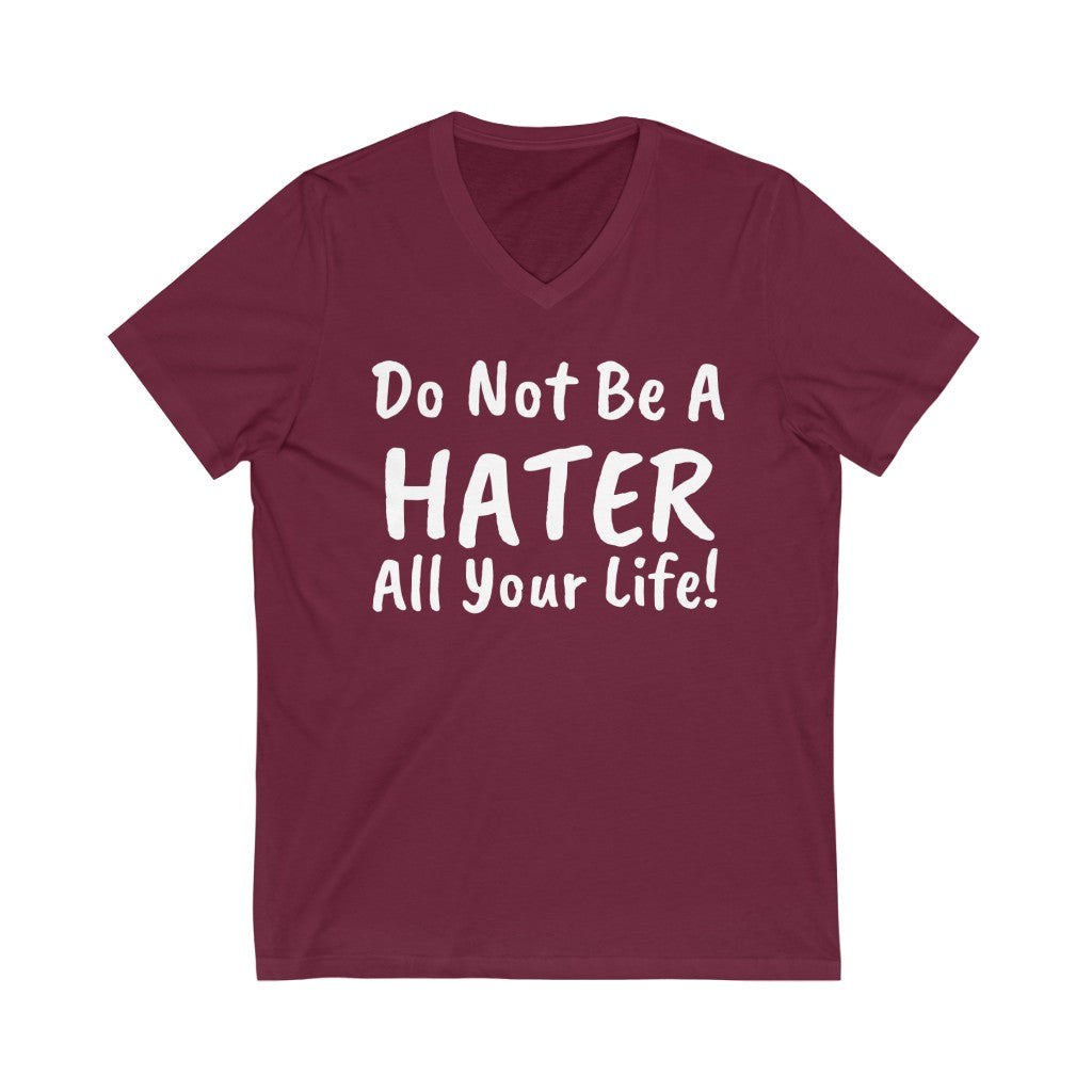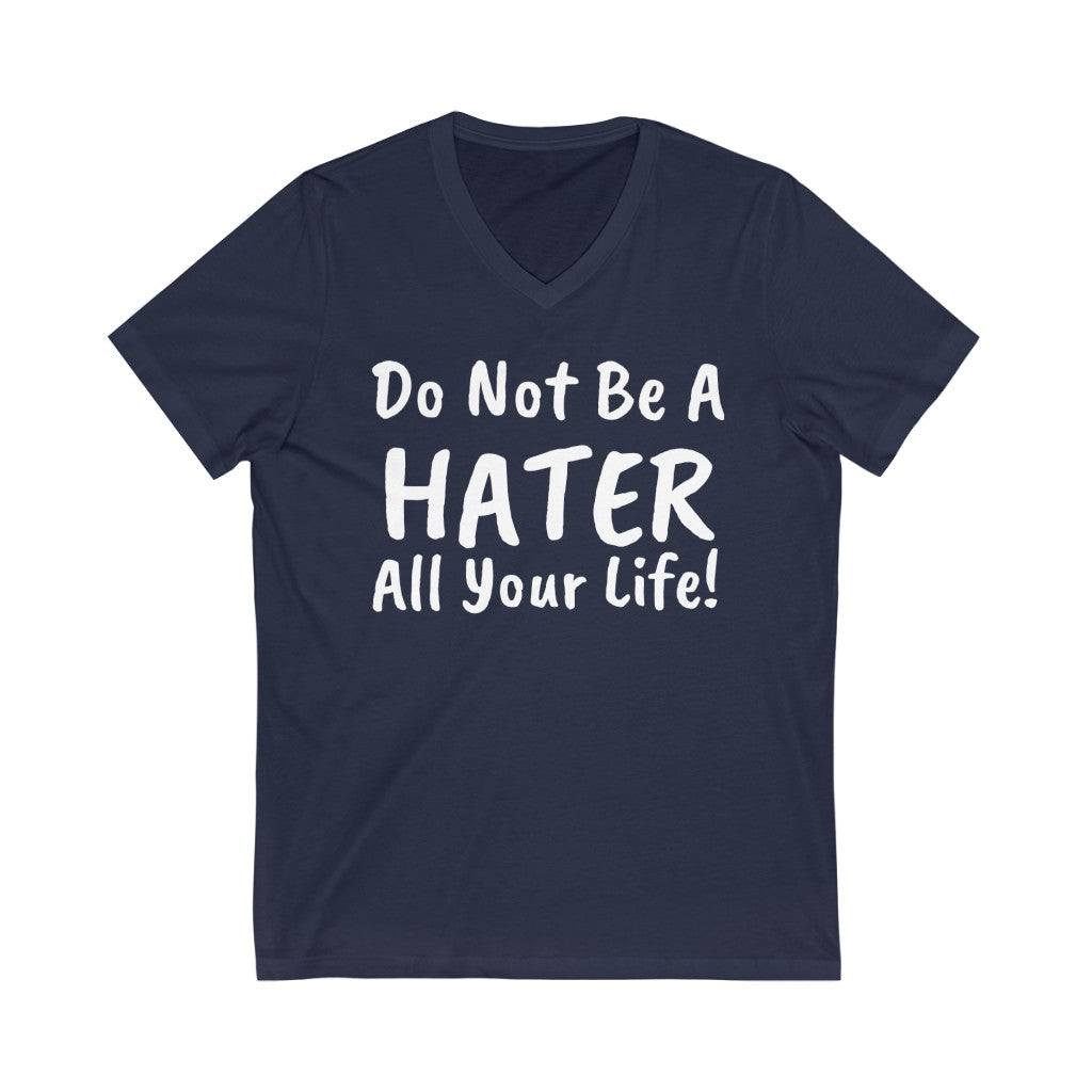 Do not be a hater all your life! Unisex Jersey Short Sleeve V-Neck Tee