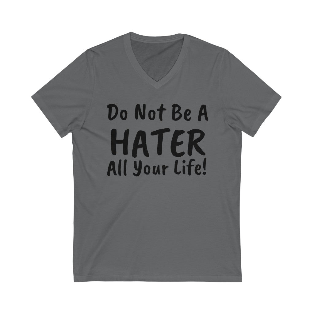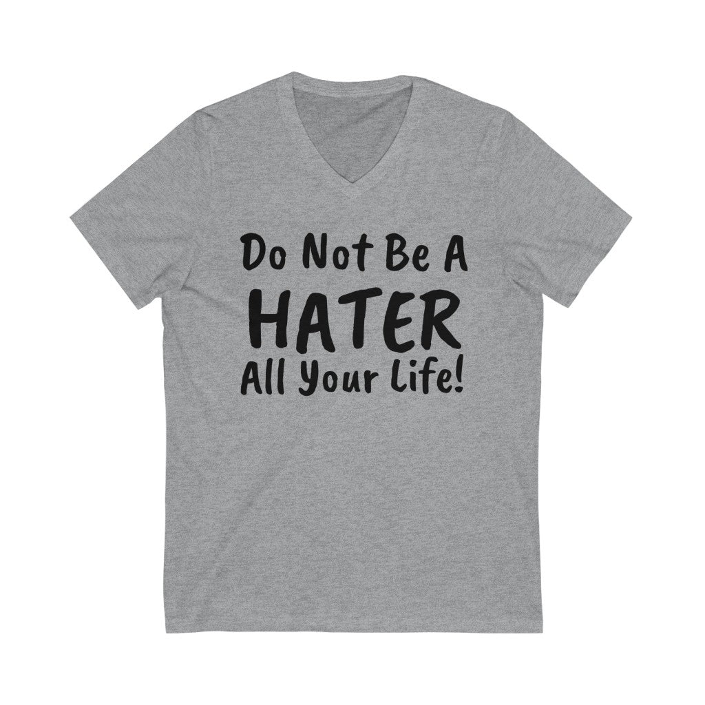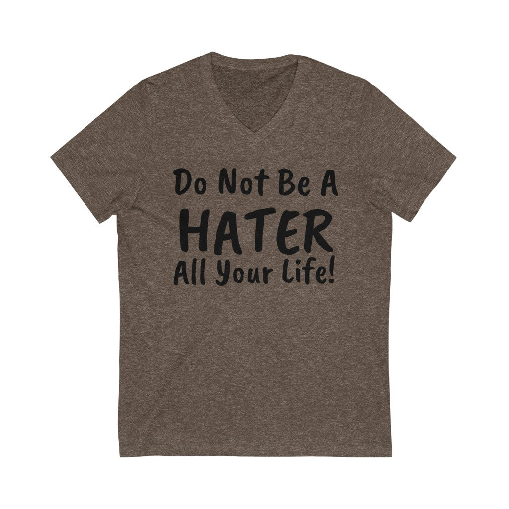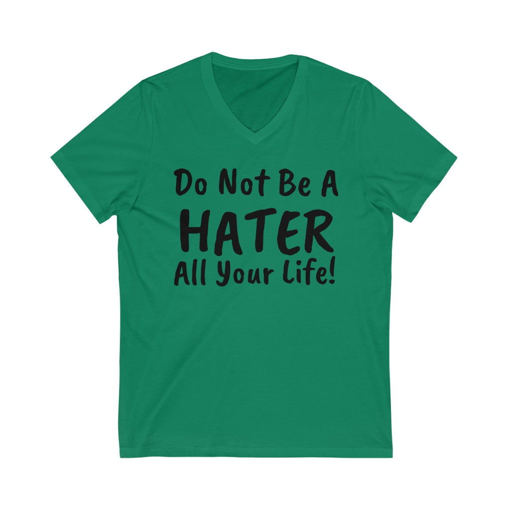 Do not be a hater all your life! Unisex Jersey Short Sleeve V-Neck Tee